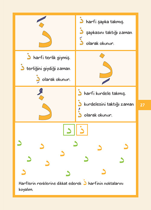 Her bir harfin harekesini öğrenirken hayal dünyası da göz önüne alınarak akılda tutma yolları açıklanmıştır.