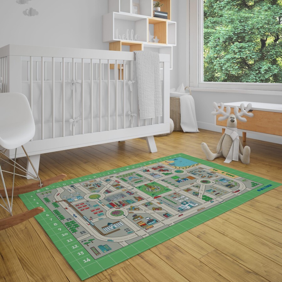 Hastanesinden camisine, havalimanlarından okullara kadar her şey bu özel halı üzerinde! Çocuklarınız, bu detaylı harita üzerinde oyun arabalarını sürebilecekleri yolları keşfederken, farklı bölgelerde de yaratıcı oyunlar oynayabilecekler.