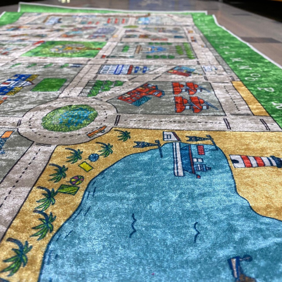 Çocuklarınızın hayal gücünü canlandıracak, keşfetmelerini sağlayacak ve aynı zamanda yumuşacık bir dokuya sahip olacak mükemmel bir ürünle tanışın! 150 cm x 100 cm boyutlarındaki şehir haritası çocuk halımız, çocuklarınızın oyun dünyasını daha da renklendirecek.