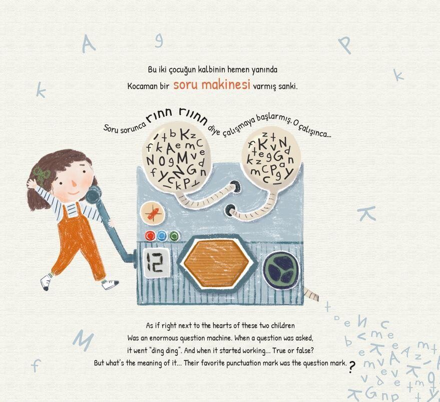 Soru sormayı seven çocuklara ve çocukların sorduğu sorulara hayranlık duyan yetişkinlere ilham veren ‘Soru Makinesi’ ile siz de kendi sorularınızın peşinden gidin! Kim bilir, belki de Soru Makinesi bu kez sizin için çalışır. Çocuklarınızla, üzerinde uzun uzun konuşacağınız bu kitap kütüphanenizin vazgeçilmezi olacak.